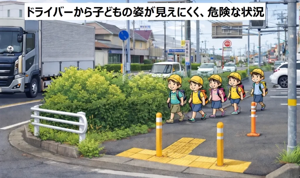 「植栽や草木によって子どもの姿がドライバーから見えにくい」といった不安を解消するため、私が茨城県の管轄部署と協議を重ね、従来の約2倍となる予算を確保しました。