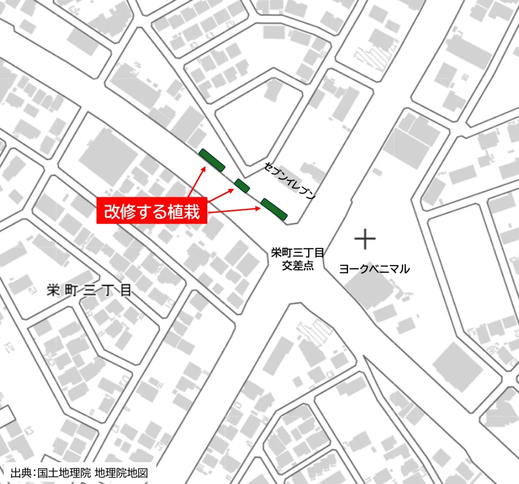 ②花水木通りと国道408号線の交差点(やまと仏壇前)の植栽